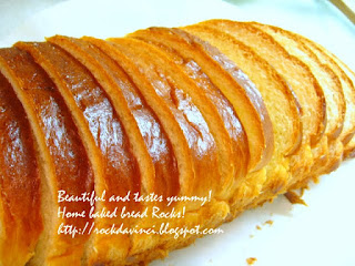 This is another wonderful tasting bread recipe that I got from one of blog site that I linked through my "inspiration" bloggers in Malaysia and Australia. http://smallsmallbaker.blogspot.com; She calls it the "Super Soft Custard Bread". Please obtain recipe from her site. Here is how mine turned out. As everyone's oven behaves differently "sadly", I baked this loaf in my Turkey Roast Pan - idea: to keep moisture in.