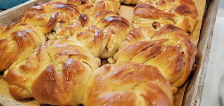 First, the twisty bread sticks filled with apricot preserves or almond paste - my preference